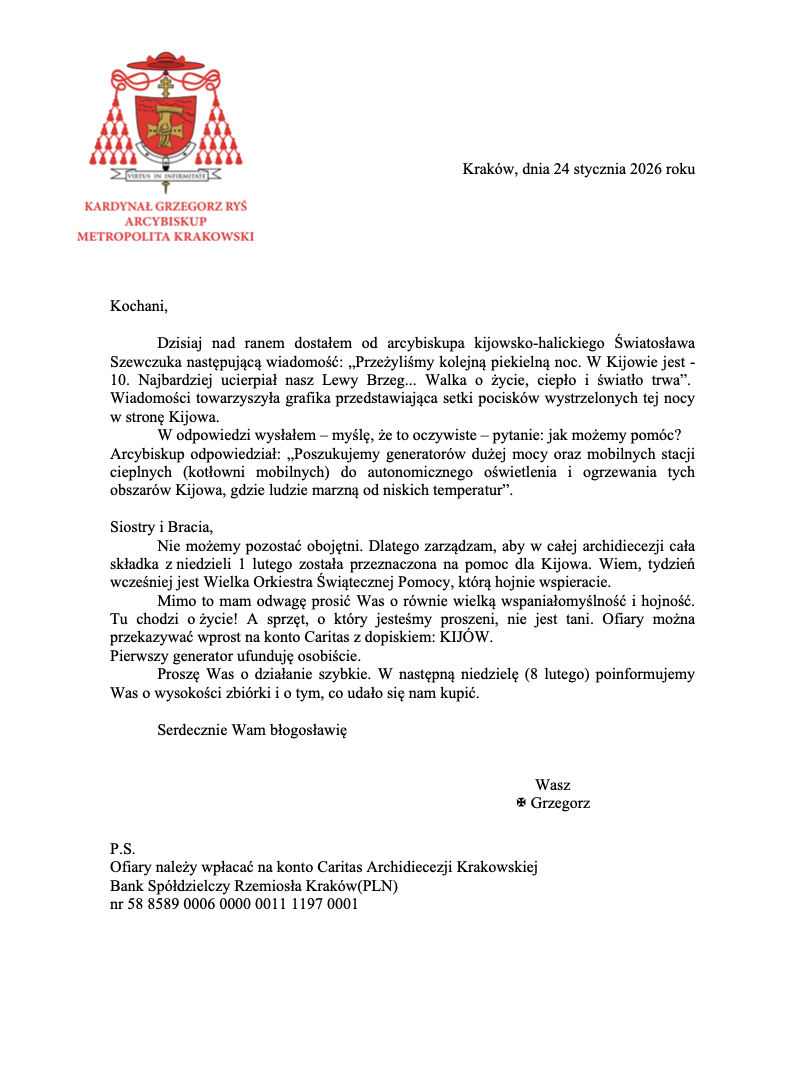 1. Ksiądz Kardynał Grzegorz Ryś prosi o odczytanie następującego listu (na dole ogłoszeń).